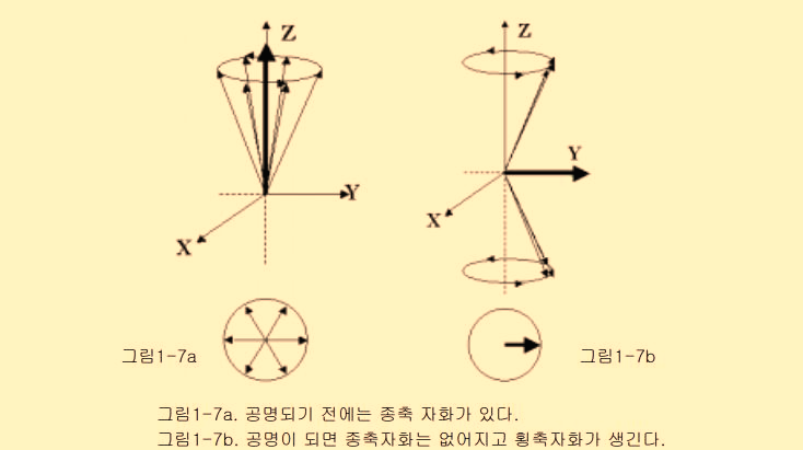 결과적으로 공명현상으로 인하여 종축의 자화는 없어지고 새롭게 횡축의 자화가 생긴다.