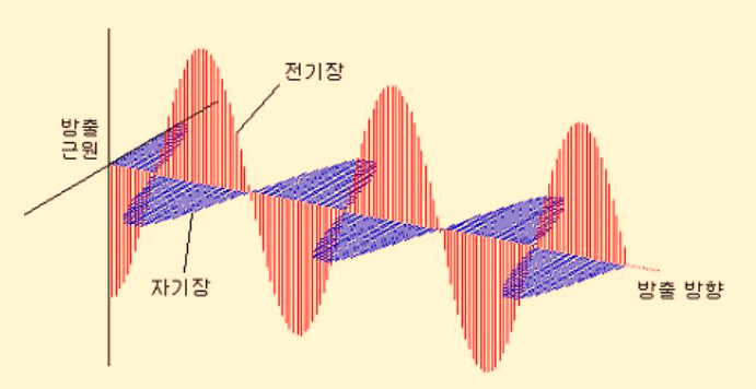 자기공명에서 이용되는 공명주파수는 라디오주파수 영역에 속하는데, 전기장과 자기장의 진동방향은 직교하고 있으며 어느쪽도 진행방향에 대해서 수직입니다.