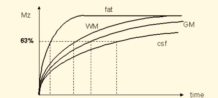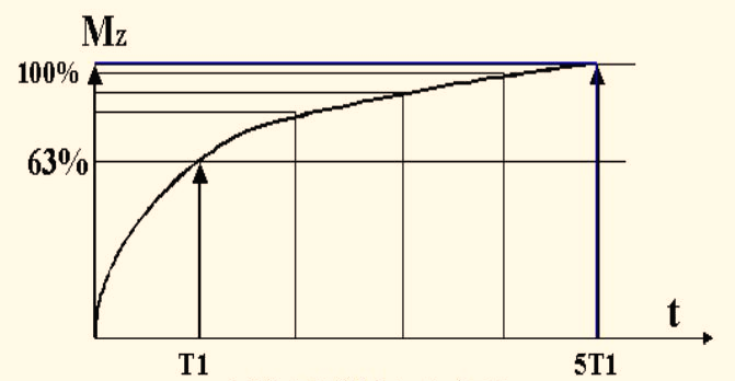 T1이완시간이 두배가 되면 91%의 종축자화가 회복되며, 3배의 시간 후에는 97%가 회복됩니다.