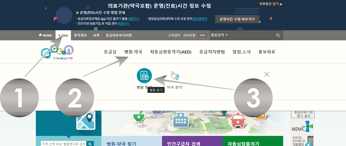 응급의료포털사이트 https://www.e-gen.or.kr 접속합니다.