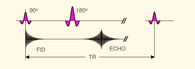 SE기법은 90도 RF pulse와 Refocusing 시키는 180도 RF pulse를 인가한 후 만들어지는 하나의 echo를 받아서 영상화 것입니다.